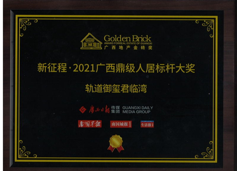 • 軌道御璽君臨灣項目獲得廣西地產(chǎn)金磚獎“新征程·2021廣西鼎級人居標桿大獎”