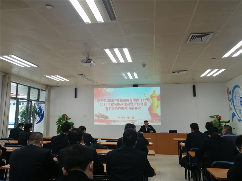 為深入學(xué)習(xí)貫徹黨的二十大及二十屆中央紀委二次全會會議精神,推進公司全面從嚴治黨和黨風(fēng)廉政建設(shè)工作,增強全體黨員干部的廉潔自律意識,營造風(fēng)清氣正的廉潔過節(jié)氛圍,2023年1月17日南寧軌道地產(chǎn)物業(yè)公司黨支部在東站樞紐培訓(xùn)室召開2023年黨風(fēng)廉政建設(shè)警示教育暨春節(jié)前集體廉潔談話,公司全體黨員、入黨積極分子、中層管理人員共47人參加了此次會議。
