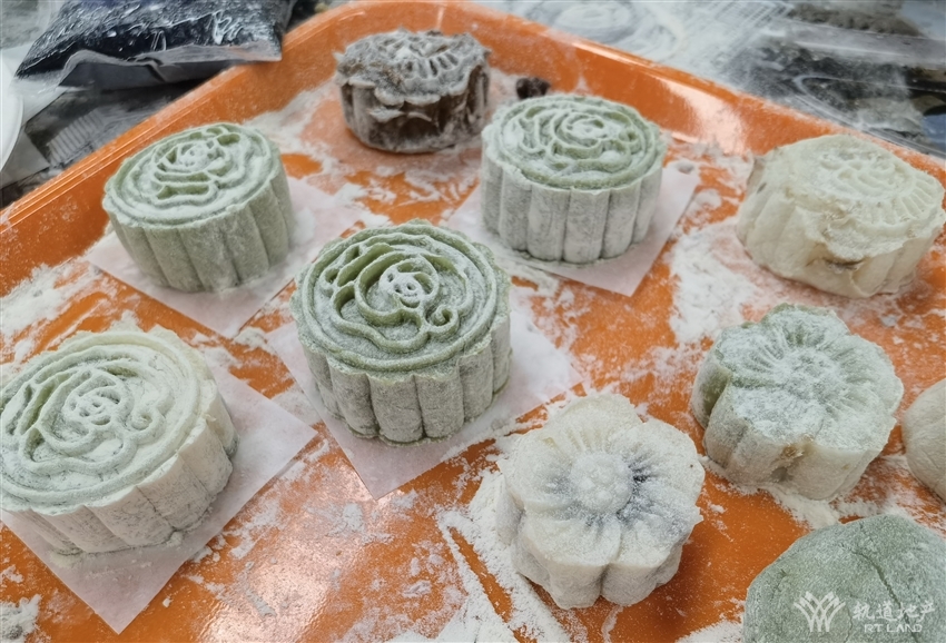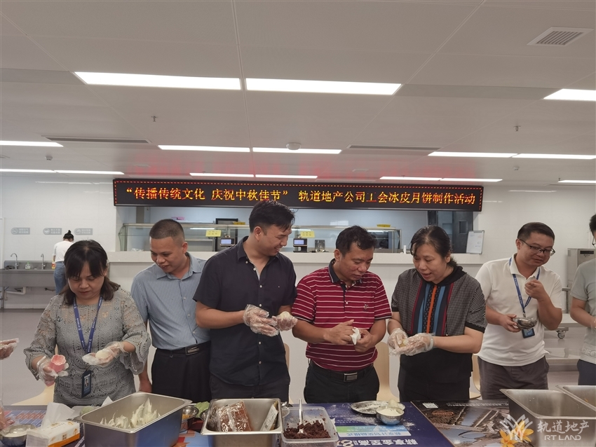 皎皎天上月,圓圓中秋節(jié)。在這個(gè)象征著團(tuán)圓與美好的節(jié)日,9月16日中午,公司工會(huì)邀請(qǐng)了面點(diǎn)師與員工們一起親手做月餅?;顒?dòng)現(xiàn)場(chǎng),已經(jīng)提前準(zhǔn)備好了餡料、面皮和工具,在老師的示范講解與指導(dǎo)下,大家迫不及待地戴上手套,開始分工制作,揉面、壓皮、包餡、收口、壓模,忙得不亦樂乎,現(xiàn)場(chǎng)一片歡聲笑語。經(jīng)過一番摸索和創(chuàng)作,一個(gè)個(gè)晶瑩剔透、造型精致的冰皮月餅就新鮮誕生了,清爽的抹茶餡、營養(yǎng)的芝麻餡、軟糯的豆沙餡、香醇的巧克力餡,一口下去吃貨們的滿足感溢于言表。