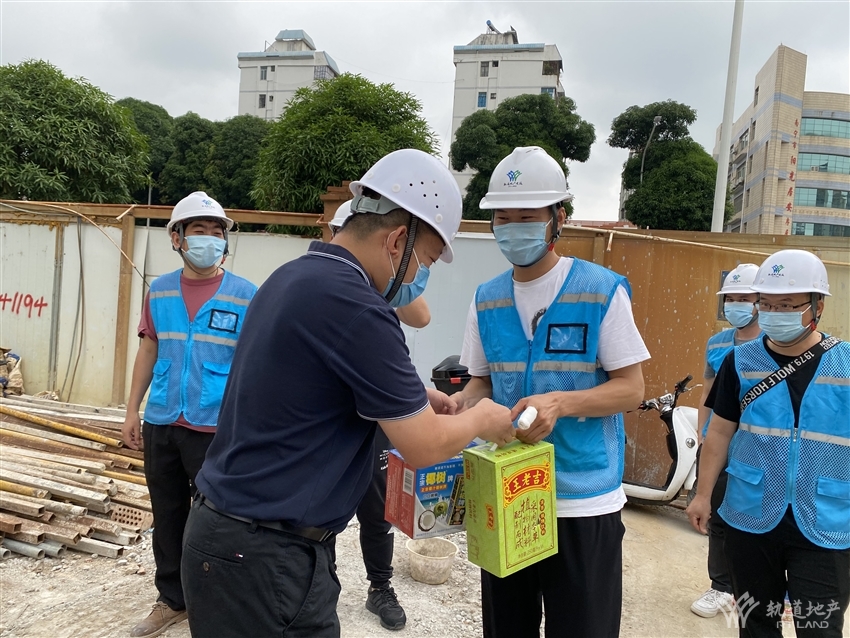 軌道地產(chǎn)建筑公司總經(jīng)理助理廖建彬帶領(lǐng)工會(huì)工作人員為項(xiàng)目一線管理人員和勞務(wù)人員送上清涼飲料等慰問品。對(duì)于項(xiàng)目一線管理人員,他要求在高溫期間要合理安排工序,做好防暑后勤保障工作,做到施工進(jìn)度和身體健康保障兩不誤;對(duì)于勞務(wù)人員,他叮囑大家在夏季高溫工作期間要注意防暑降溫,合理調(diào)整工作時(shí)長,在確保身體健康的情況下,按時(shí)按質(zhì)按量完成工作任務(wù)。