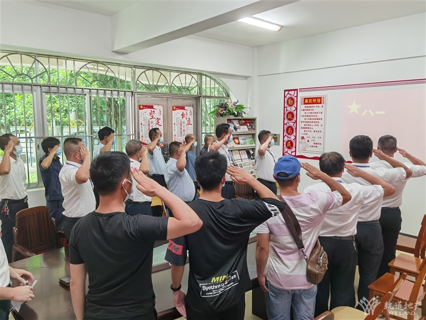 在接下來《我依然是一個(gè)兵》的主題座談會(huì)上,軌道地產(chǎn)物業(yè)公司的退伍軍人們紛紛暢談自己軍旅生涯,回憶歷史、述說現(xiàn)在、展望未來。就職于軌道地產(chǎn)物業(yè)公司的老兵們盡管身份變了,崗位變了,服裝變了,但是那顆堅(jiān)韌不屈、拼搏奮進(jìn)、永葆忠誠的心始終不變,那種堅(jiān)毅的氣魄無時(shí)無刻不在彰顯。面對(duì)不良,他們大聲呵斥;面對(duì)業(yè)主,他們眼含微笑。一雙巧手,修器械,補(bǔ)缺漏;一對(duì)明目,迎晨曦,送晚霞;一身剛軀,守家門,鎮(zhèn)宵小。穿上戎裝,他們保衛(wèi)國家。褪下軍服,他們守護(hù)園區(qū)。在第95個(gè)建軍節(jié)來臨之時(shí),這些老兵們面對(duì)軍旗再次敬個(gè)禮,再次合唱了《人民解放軍軍歌》。